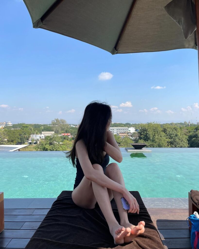 One picture takes us to a luxurious hotel pool in Thailand, where Ji Young is seen enjoying a well-deserved vacation.