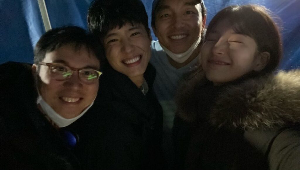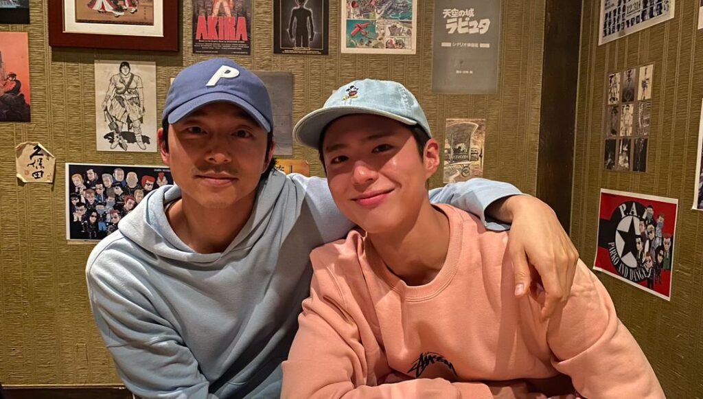 Gong Yoo is rocking a blue cap and a light sky blue hoodie, while Park Bo Gum is wearing a sweatshirt and a blue cap. Even in casual clothes, their visuals are perfect, and fans are loving it.