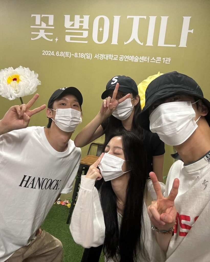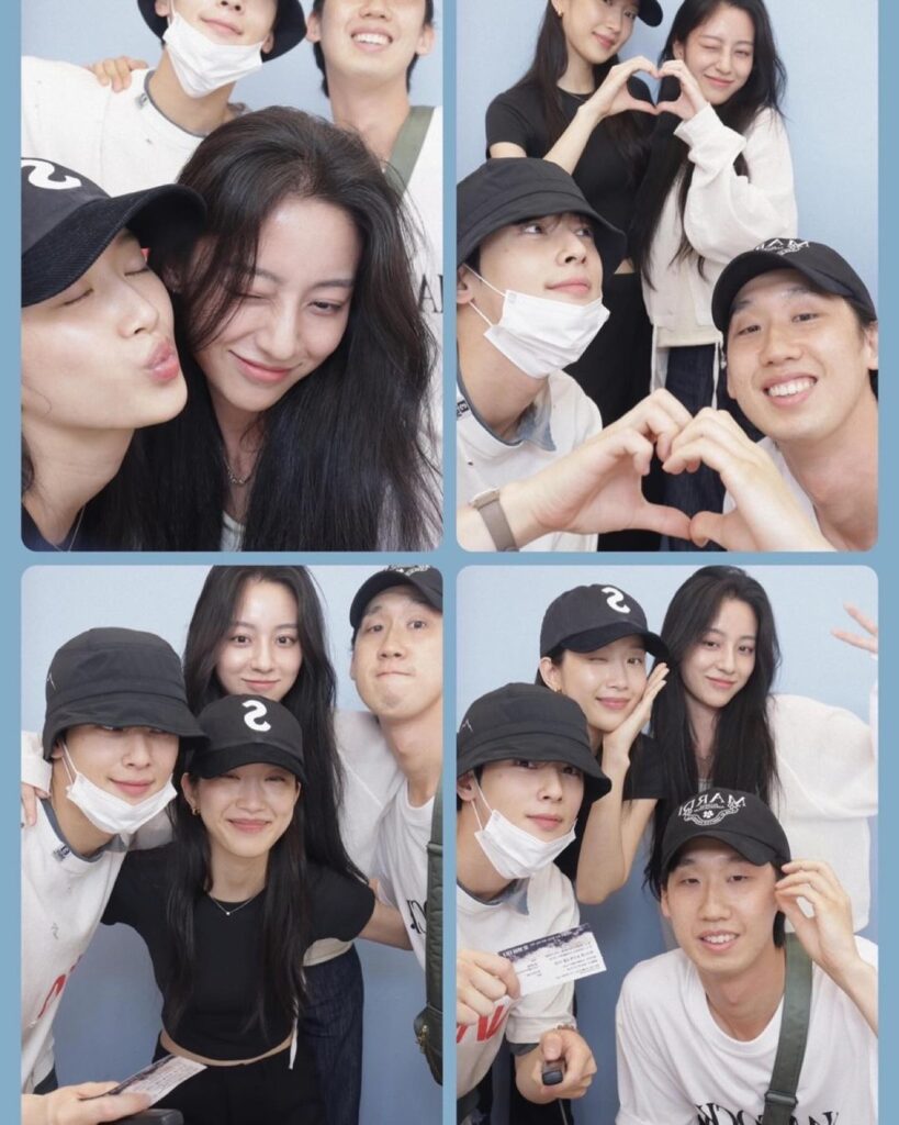 The pictures captured Cha Eun Woo, Moon Ga Young, Kang Min Ah, and Lee Sang Jin enjoying the play 'Flower Stars Pass By,' featuring Im Se Mi. Despite wearing masks, they had a great time taking photo booth pictures together, showing off their joyful reunion.