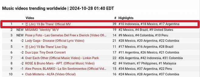 On YouTube, Jin’s “I’ll Be There” music video has trended #1 globally for four consecutive days, proving his powerful influence. The live performance clip, where Jin’s visuals and vocals shine, also ranked in the top 5 worldwide.