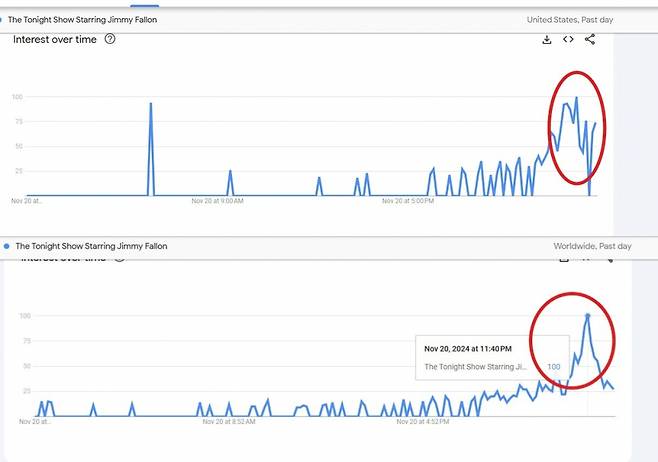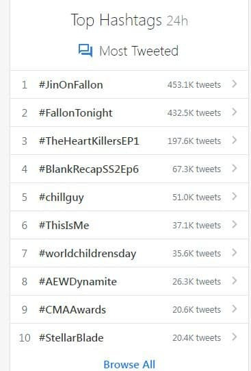 As soon as Jin hit the stage, the hashtag #JinOnFallon soared to the top of X (formerly Twitter)’s U.S. real-time trends. The buzz didn’t stop there—Google and YouTube searches for Jin surged across the globe, proving his incredible popularity and influence.