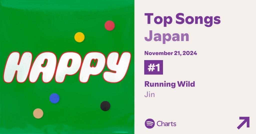 On November 21, Running Wild reached the top spot on Spotify Japan's Daily Top Songs chart, showing its massive popularity.