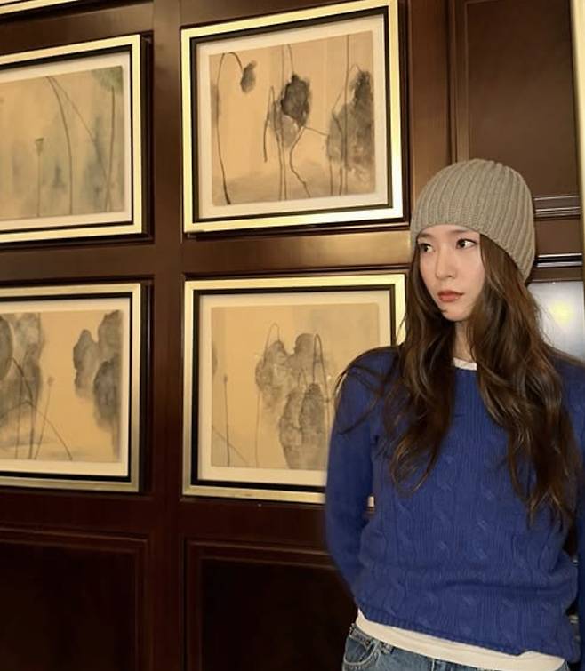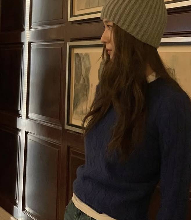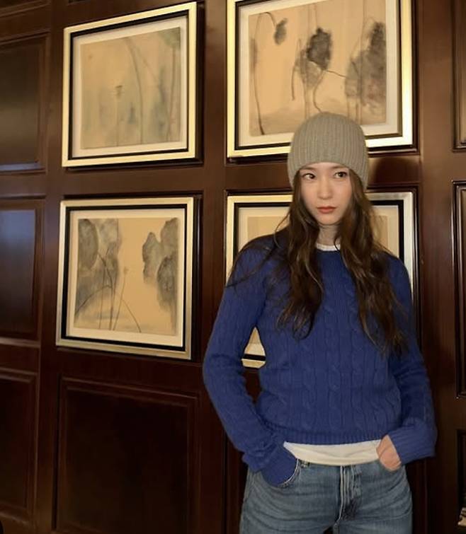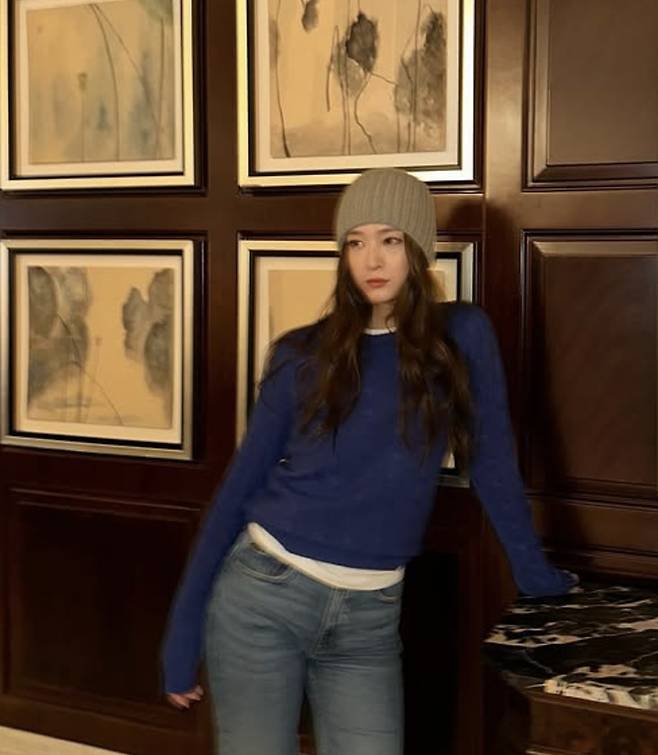 In the pictures, Krystal rocked a cozy blue knit sweater paired with a cute gray beanie, giving off major winter vibes.