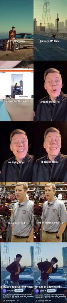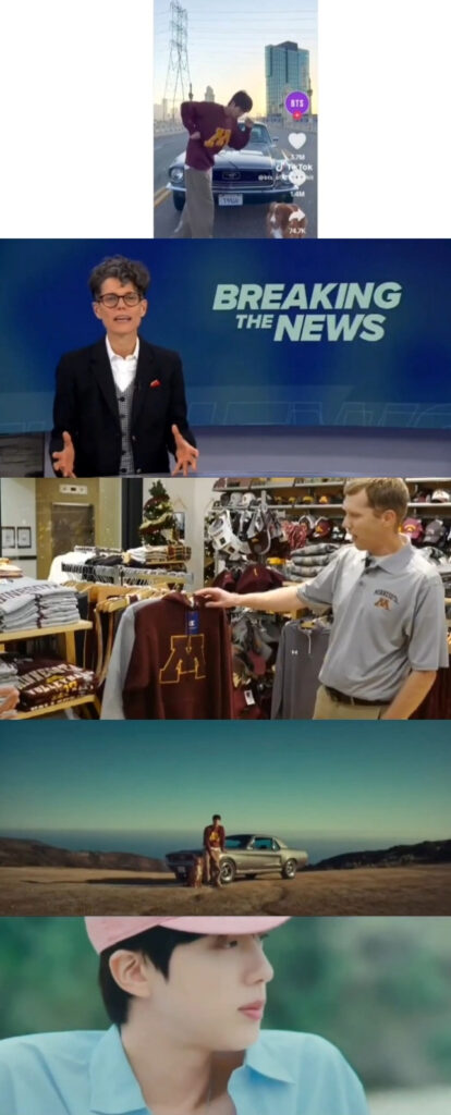 In the Running Wild music video, Jin wears the now-famous sweatshirt, and while the reason behind his choice remains a mystery, it’s clear that it’s causing a massive stir. Fans worldwide immediately took to the Minnesota University campus bookstore, eager to know how they could snag the same item.