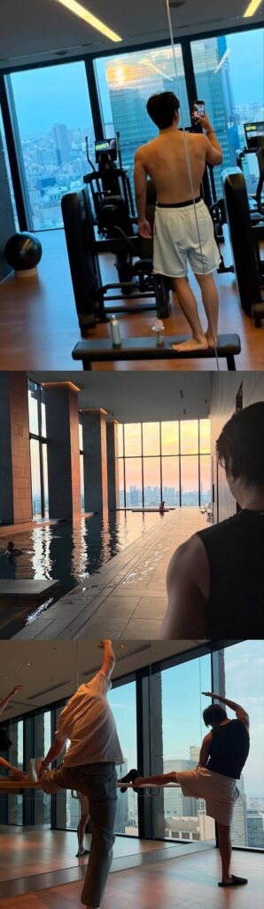 Other photos showed V sipping on protein shakes, stretching at a ballet bar, and enjoying delicious sushi — switching effortlessly between “fitness king” and “adorable foodie.”