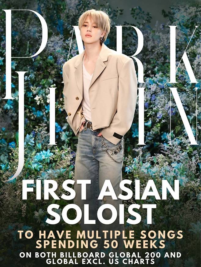 With “Who” now following right behind, Jimin becomes the first and only Asian solo artist to have two songs chart for 50 weeks or more on both Billboard global charts — and he did it with no Western collaborations, just his own artistry and sound.