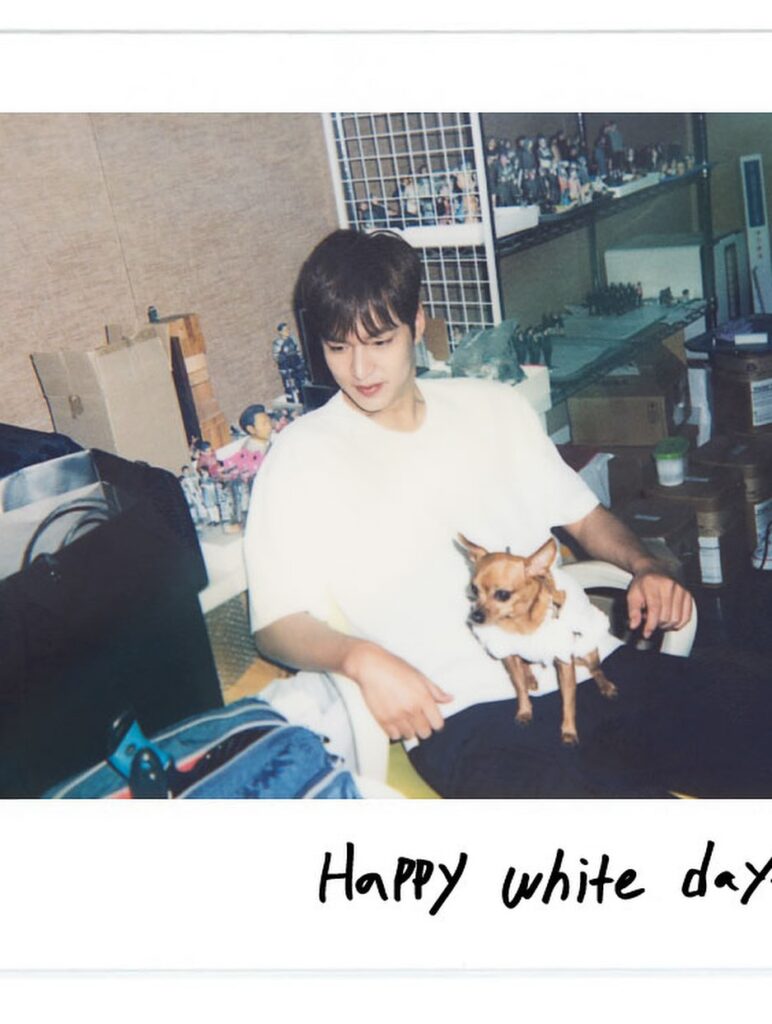 Along with the post, he shared a peaceful video of himself gently holding Choco in a car, along with sweet photos that captured special memories — including spending White Day together.