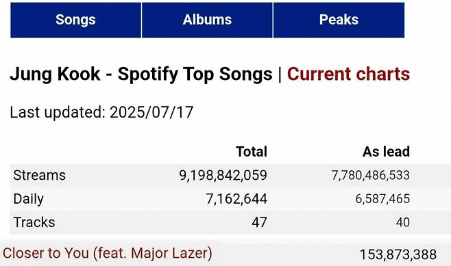 The album ‘GOLDEN’, which features “Closer to You,” has become a historic release. It is now the first album by an Asian solo artist to reach 5.8 billion total streams on Spotify.