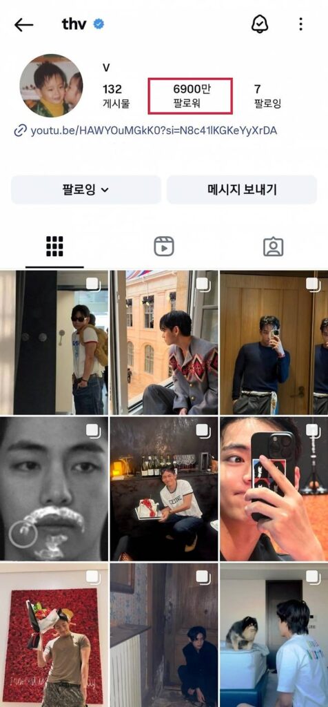 As of July 24, V’s personal Instagram account has officially surpassed 69 million followers. This milestone comes shortly after he completed his mandatory military service on July 6, showing just how much fans missed him.