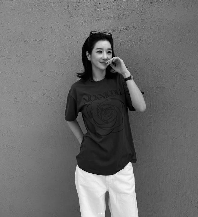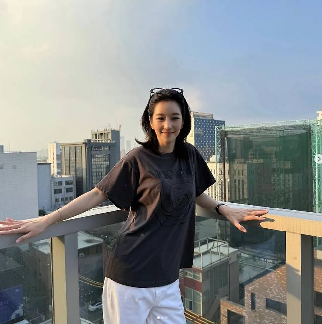 In the photos, Seo Ye Ji is seen posing on a rooftop during a fashion shoot. She wore a simple yet chic outfit—a basic t-shirt, comfortable pants, and a pair of sunglasses resting on her head. Her cheerful energy and crescent-shaped smile caught fans’ attention right away.