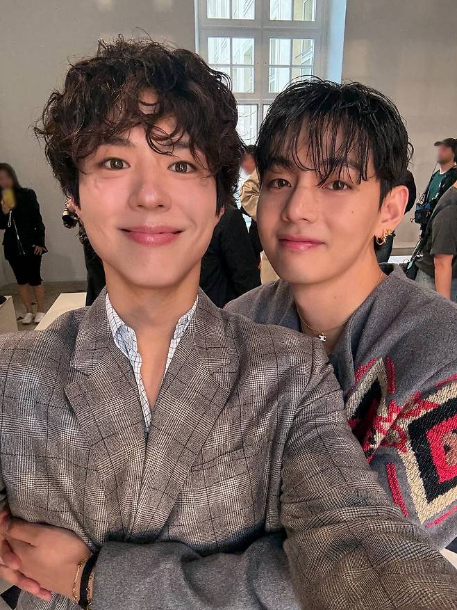 V and Park Bo Gum have been close friends since 2015 when they met on Music Bank, where Bo Gum was the MC. V once said in an interview, “Bo Gum hyung and I exchanged numbers, found out we liked the same things, and got close.”