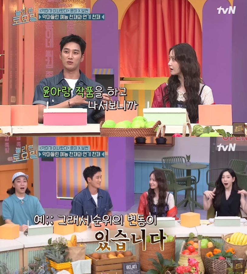 On the August 2 episode of tvN’s Amazing Saturday, actor Ahn Bo Hyun and Girls’ Generation’s YoonA appeared as special guests to promote their new movie Pretty Crazy.