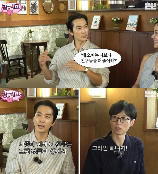 Song Seung Heon jokingly replied, “I guess I’ll just stop seeing my friends,” making everyone laugh.