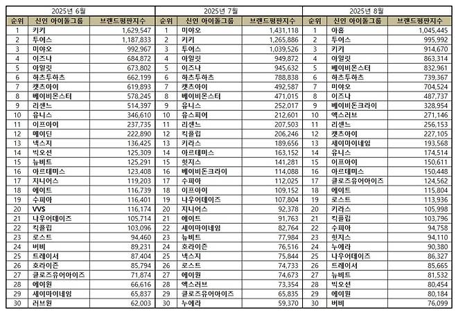 Full Top 30 Rookie Idol Group Rankings (August 2025)