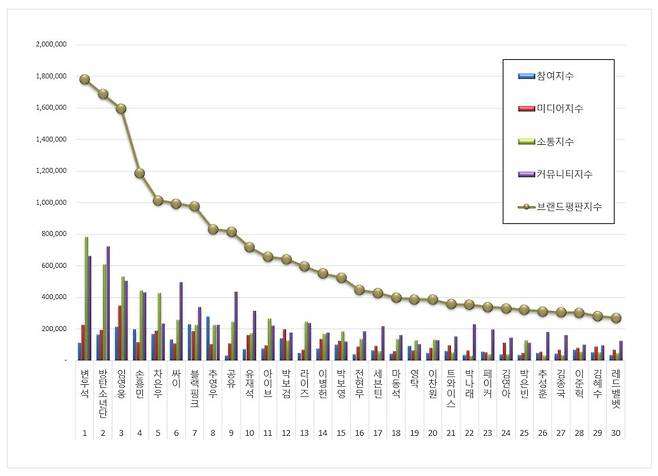 Trot singer Lim Young Woong kept his place among the top 3 with a score of 1,593,895, though this was down 18.32% from his previous score in July.