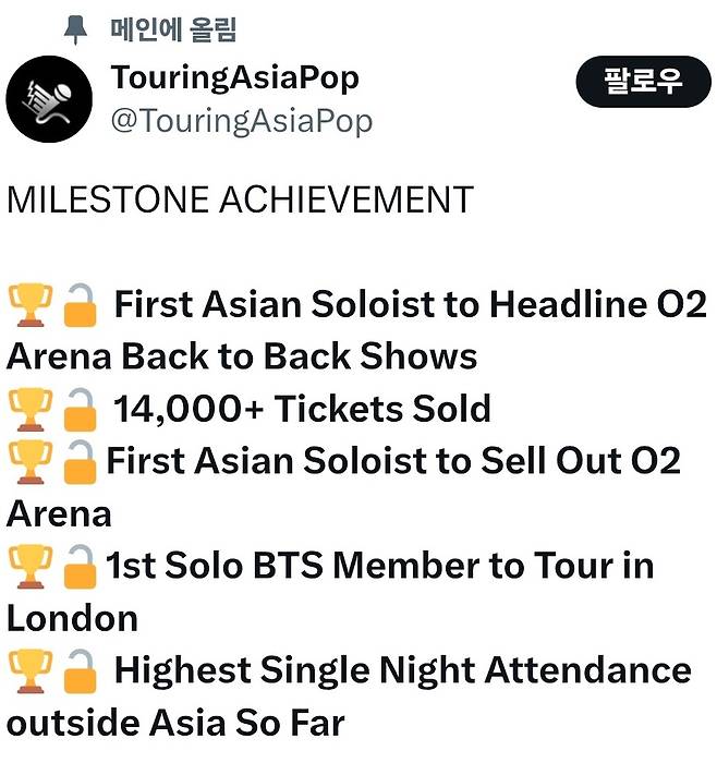 Meanwhile, Pop Core confirmed that Jin made history again by being the first Asian soloist to sell out back-to-back shows at the O2 Arena.