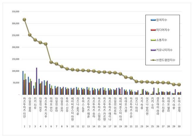 Coming in 1st place is Hearts2Hearts Ian, showing a massive jump in popularity with a 75.37% increase compared to last month. She scored high across all categories with a total brand reputation index of 316,581.