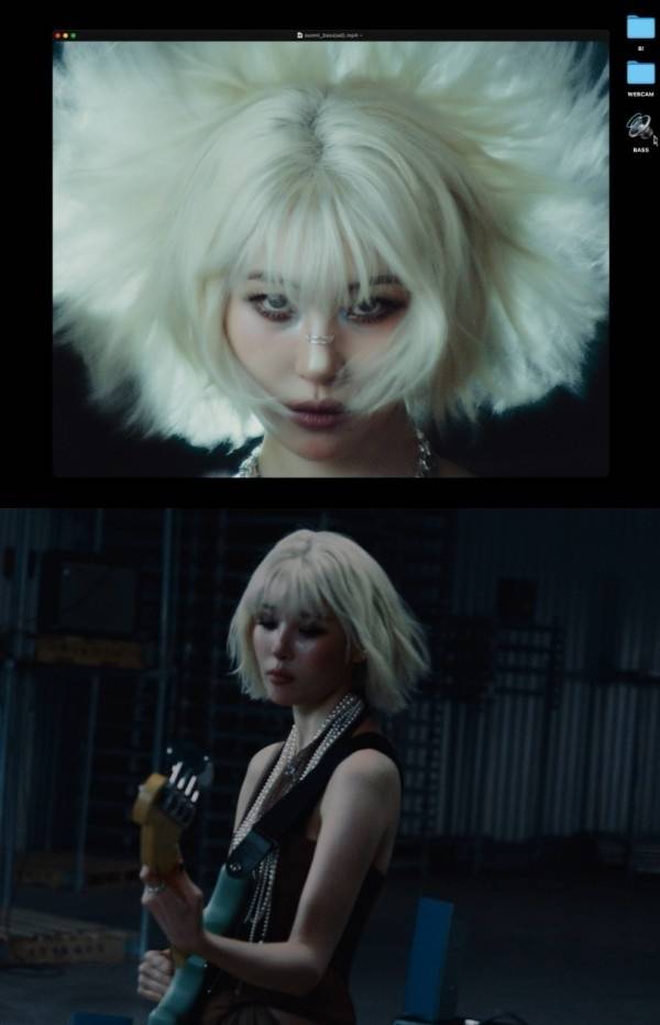 In the video, Sunmi turns heads with a daring new look — short golden-blonde hair, smoky eye makeup, a white tube top, oversized denim jacket, and high heels. She also personally plays the bass guitar in the teaser, giving fans a taste of the strong sound and edgy concept that may be coming.