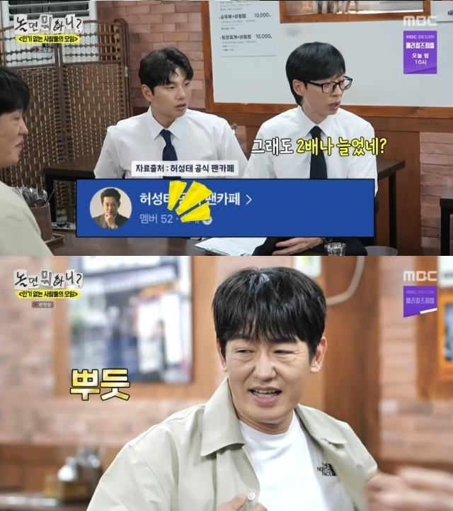 When Yoo Jae Suk mentioned hearing about his fan cafe, Heo shyly said, “It has about 30 members.” But the production team revealed that the number has since grown to 52, prompting Yoo to laugh and congratulate him, saying, “It doubled!”
