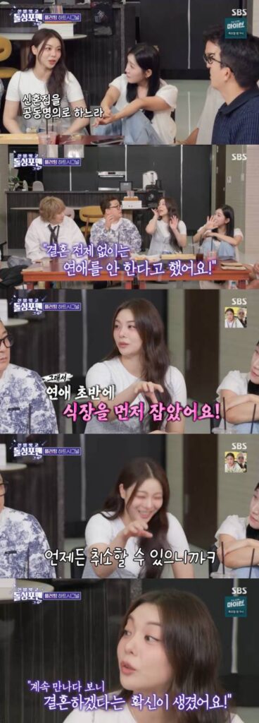 She also shared a lighthearted memory from their dating days, recalling how she once found a birthday card from Choi Si Hoon’s ex-girlfriend in his car. “A few months into dating, I was helping him look for something in the console box and found a birthday card written by his ex. I read it out loud right there,” she laughed. “Later, he caught me trying to shred an album covered with pictures of my ex-boyfriend.”