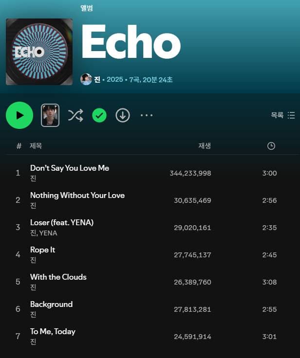 Released in May 2025, Echo officially surpassed 500 million streams on August 16, reaching the milestone in just three months and showing Jin’s unmatched star power.