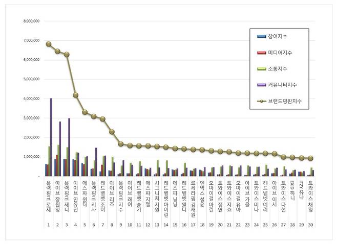 Rosé scored a total brand reputation index of 6,815,907, marking a 15.80% increase compared to July. For Jang Wonyoung, her index rose to 6,441,557 (+13.41%), while Jennie earned 6,280,705 (+17.13%).