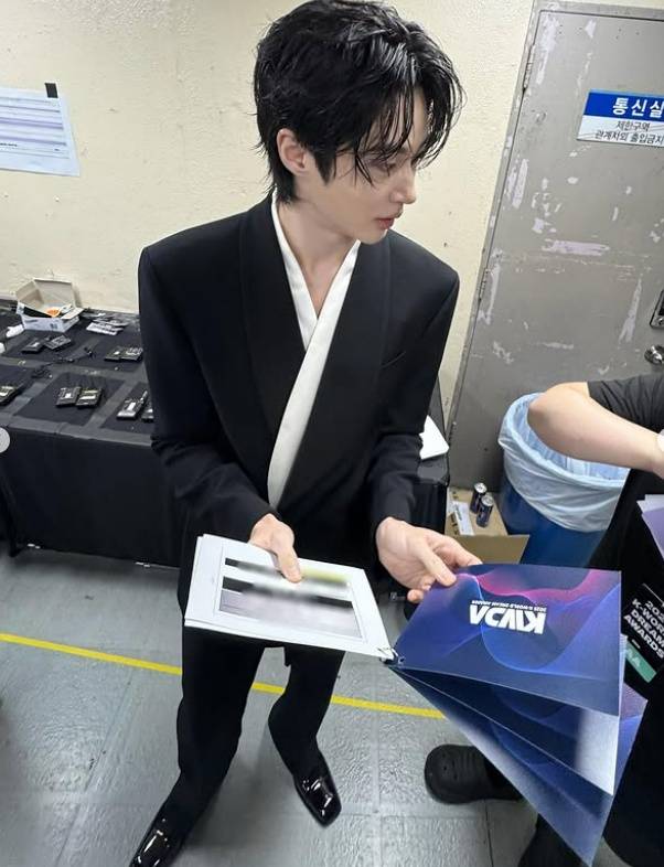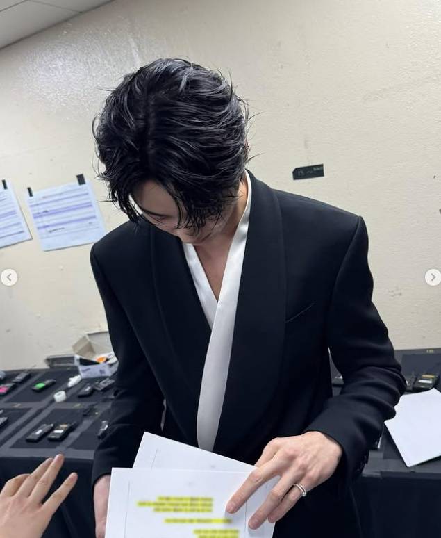 In the photos, he’s seen in a sleek all-black suit while holding his script backstage. What caught attention was that even in so-called “MZ shots”—photos taken from above that usually make body proportions look awkward—Byeon Woo Seok still looked flawless.