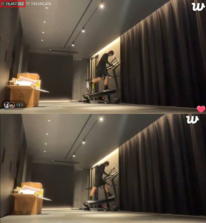 In the middle of the broadcast, Jungkook suddenly decided to do the cardio he had missed that day and headed straight to his treadmill. Wearing a tight all-black workout outfit that showed his broad shoulders and muscular build, he ran at high speed and incline, showing his incredible stamina.