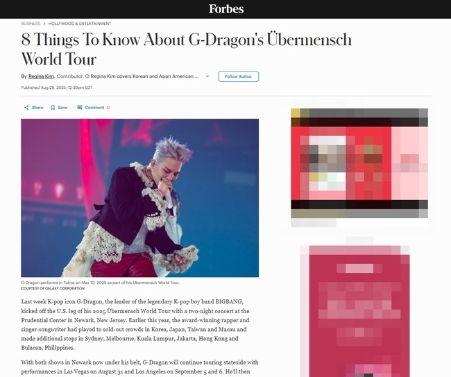 G-Dragon is once again showing his unmatched influence on the global stage, with even U.S. media giant Forbes highlighting his world tour.