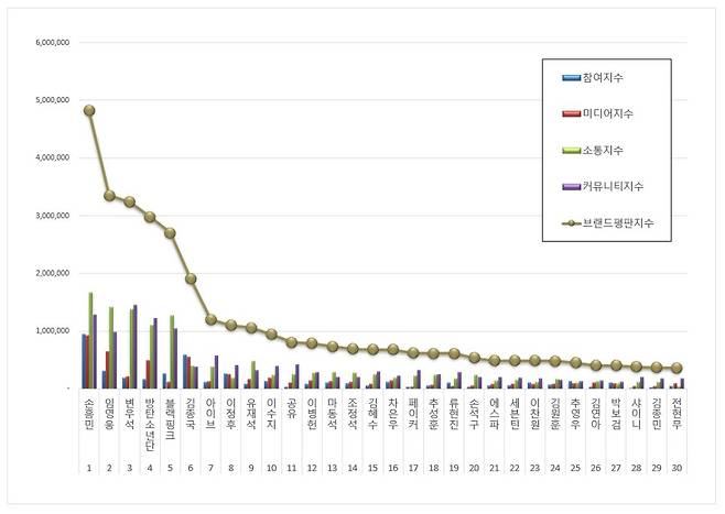Other stars in the Top 5 included BTS in 4th with 2,980,960 and BLACKPINK in 5th with 2,702,114 — both showing huge increases in brand reputation compared to last month.