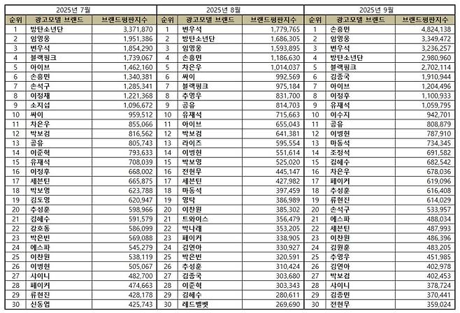 According to the Korea Corporate Reputation Research Institute, the analysis was based on over 39.5 million pieces of big data collected from August 3 to September 3.