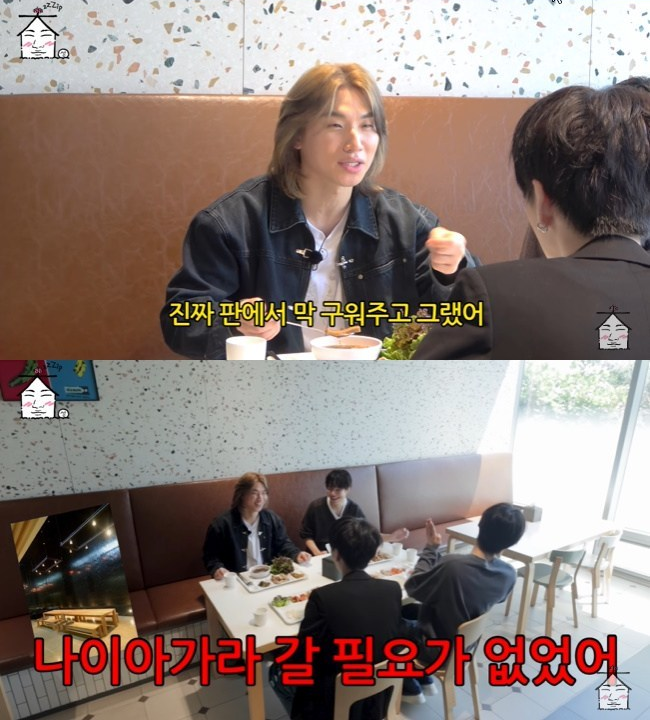 When asked which cafeteria food he preferred — the old building or the new one — Daesung replied, “The style is different. Here, it feels a bit more refined. Back in the old building, it was more like home-cooked meals. Since fewer people ate there, if you said, ‘Auntie, I want pork belly,’ they would grill it for you right on the pan.”