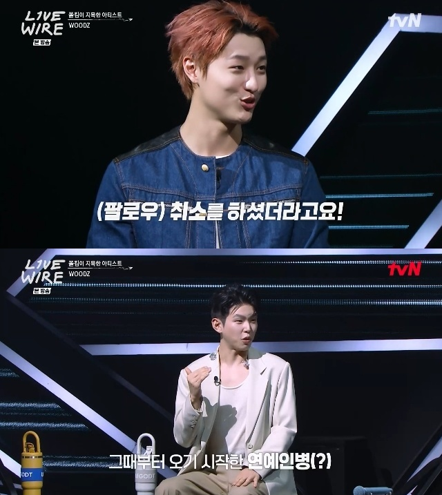 During the broadcast, WOODZ revealed their surprising connection, saying, “From my side, I thought we had a connection. He followed me first, so I was going to follow him back, but when I checked, he had already unfollowed me.”