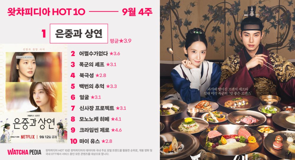 On September 26, Watcha released the HOT 10 chart (covering September 18–25). The WatchaPedia HOT 10 reflects real public interest by combining ratings, search volume, “want to watch” clicks, number of comments, and trend indicators from top Korean portals. The chart covers everything from movies and dramas to local OTT content and is updated weekly.