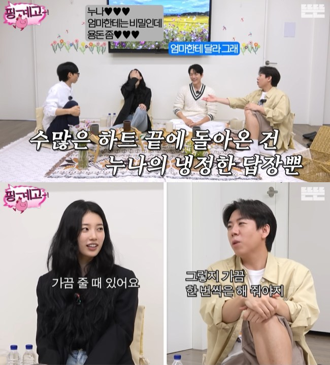 When Yoo Jae Suk asked if she gave him the money, Suzy replied, “I told him, ‘Go ask mom instead,’” causing even more laughter.