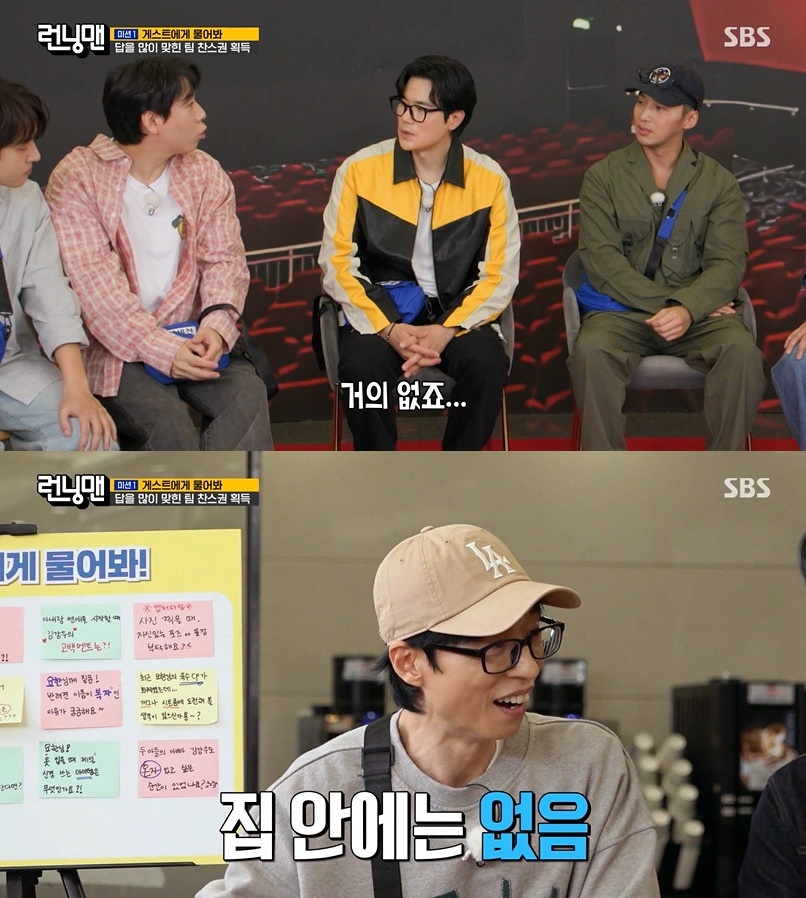 When Yang Se Chan asked if he had a personal area at home — joking that Haha uses the bathroom while Ji Suk Jin stays on the sofa — Kim Kang Woo replied, “I barely have any personal space either. I go to the library.”