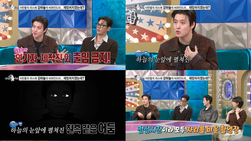 It turned out that the filming had paused for lunch, and everyone—including the production staff—had left the set and turned off the lights, not realizing Kang Ha Neul was still there.