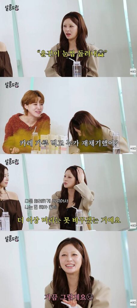 When asked about how people reacted, Yunjin laughed, saying, “People said, ‘Give Yunjin her eyebrows back,’ or ‘Where did your eyebrows go?’ Without them, I look like a bald eagle.” Comedian Jang Do Yeon also joked, “When I saw her, I almost asked, ‘Did someone sneeze with curry powder on their face?’ if she were my friend.”