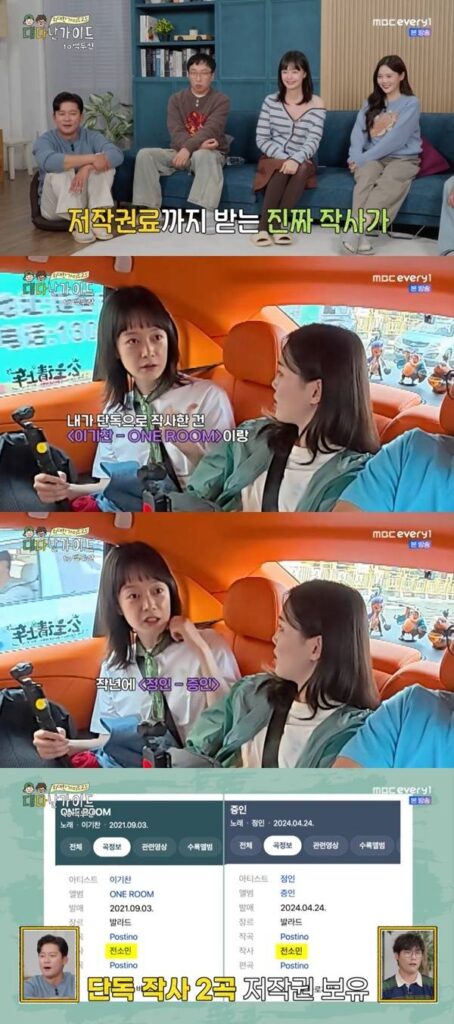 On the November 18 episode of Great Guide 2.5 – Daedanhan Guide, Jeon So Min chatted with Kim Dae Ho, Choi Daniel, and Hyojung while traveling through Yanji. During the ride, she casually mentioned that she has actually written lyrics before.