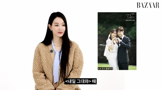 When asked if there was a dress she still thinks is beautiful, Shin Min Ah replied, “The dress from ‘Tomorrow With You’ with a modern design felt more striking.”
