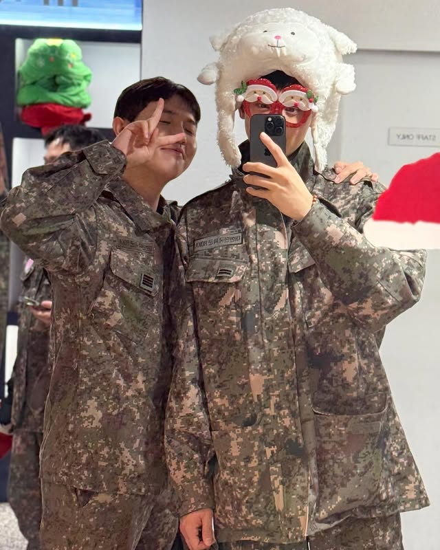 On November 29, Kim Jae Hwan shared two photos on his social media with Christmas-themed emojis, giving fans a festive glimpse of the military duo.