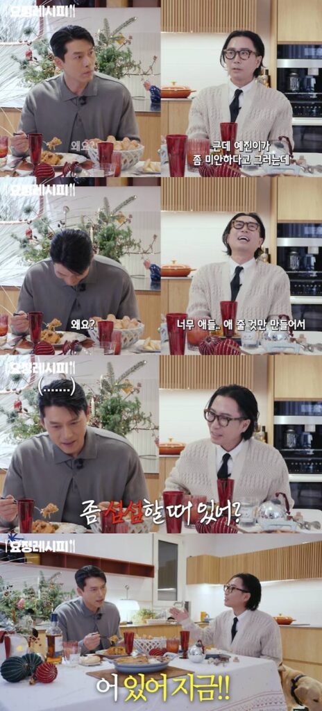 On December 20, a video titled “This time, Bin can bring something to Ye Jin♡” was uploaded on the YouTube channel Fairy Jae Hyung. Set in a warm Christmas atmosphere, Hyun Bin spent time chatting comfortably with Jung Jae Hyung, who personally prepared food for him and served oyster gratin at the table.