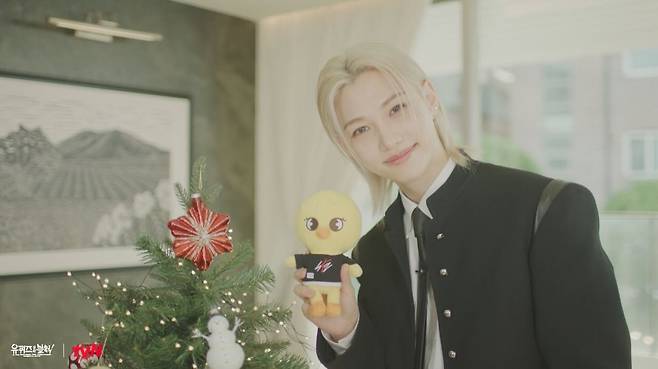 In the photos, Felix smiled brightly while chatting with Yoo Jae Seok and proudly showed his character doll.