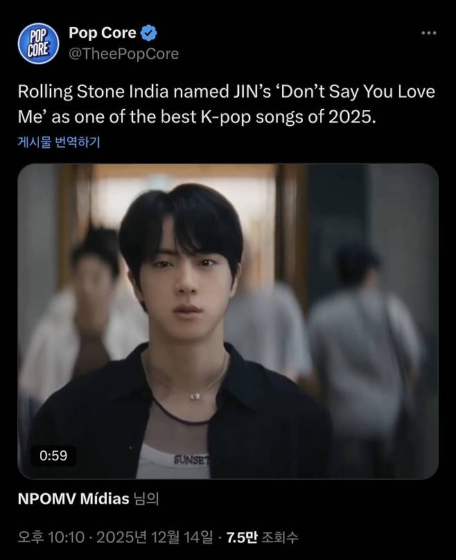 BTS member Jin has once again proven his global power as a solo artist with his hit song “Don’t Say You Love Me.”