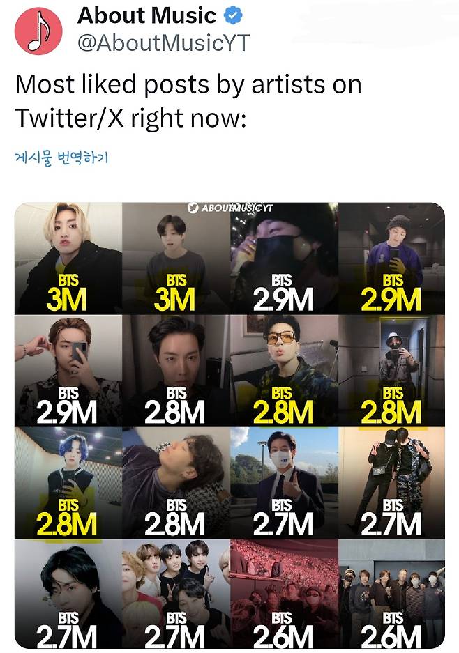 According to global music news outlet About Music, Jungkook topped the list of artist posts with the highest likes on X (formerly Twitter).