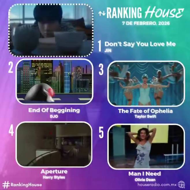 On February 7 (local time), Jin’s “Don’t Say You Love Me” secured the No. 1 spot on the “Ranking House” chart of House Radio. The achievement highlights his steady popularity in the region, especially as the chart reflects strong support from local listeners.
