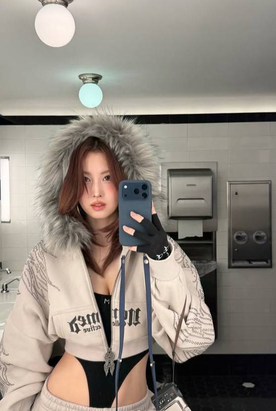 Even in chilly weather, Momo showed off her bold fashion sense and confidence.