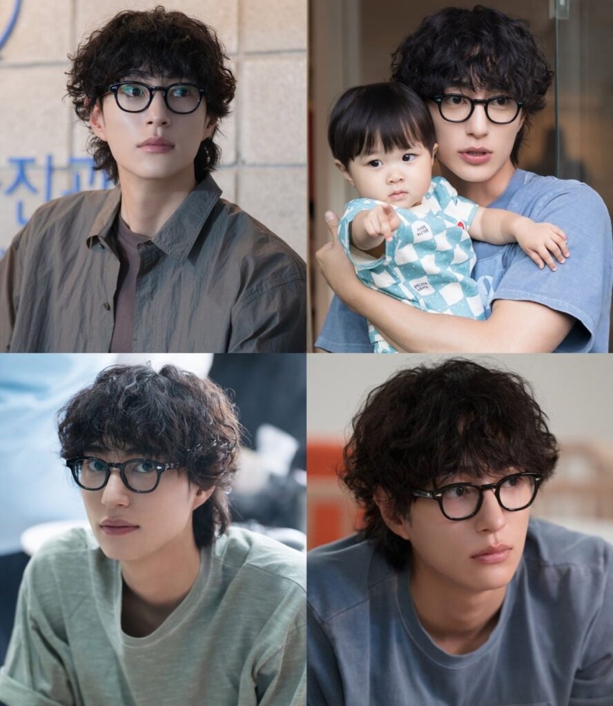 Behind the scenes photos highlight his natural curly hair and glasses, adding to his character’s approachable appeal. His chemistry with Woo Joo (played by Park Yoo Ho) has also received positive reactions from viewers.