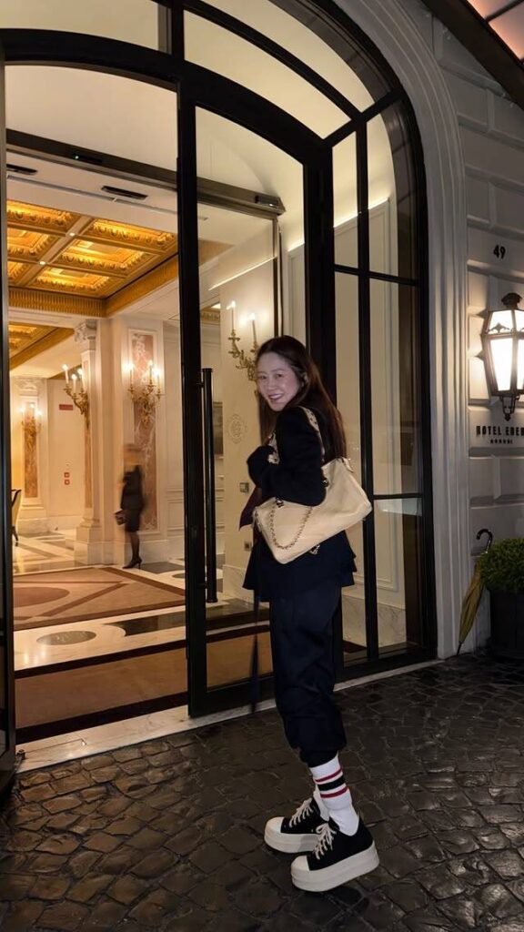 In the newly shared photos, Go Hyun Jung is seen smiling brightly outside what appears to be a luxury hotel in Rome. Her relaxed but stylish look quickly caught attention online.