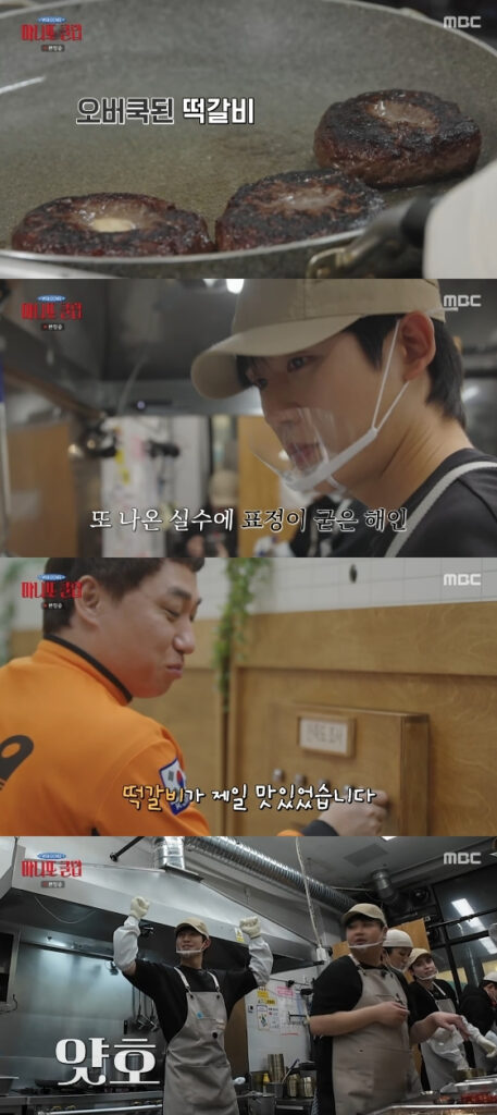 While carefully watching the meat in the heat, he ended up overcooking some of the tteokgalbi, leaving him visibly flustered as the pressure started to build.